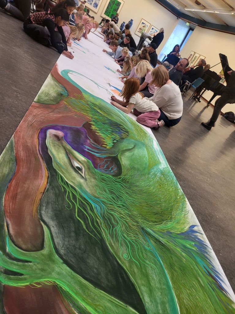 She currently leads several art workshops for adults and young people, encouraging creative expression and confidence through color, storytelling, and experimentation.